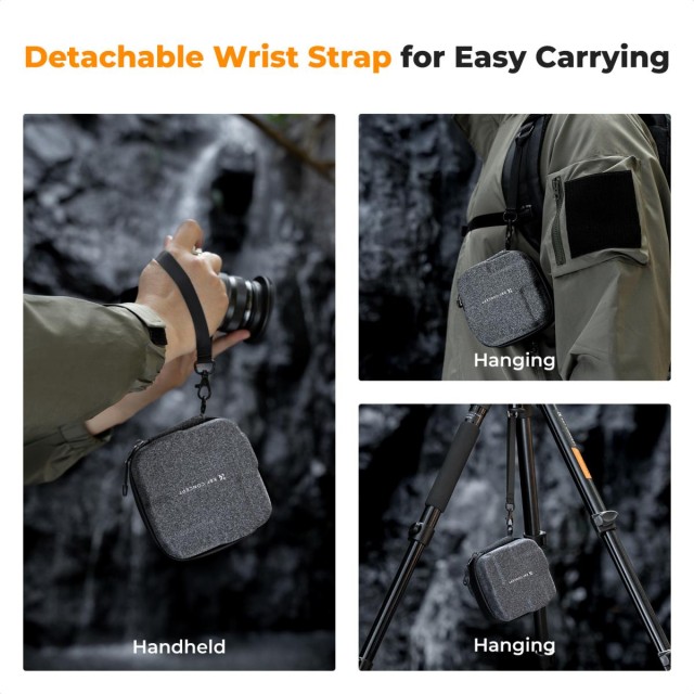 - * 【Kompaktný a prenosný dizajn】Vďaka svojej tenkej a ľahkej konštrukcii je toto puzdro na filtre objektívov ľahko prenosné kamkoľvek. Je vybavené odnímateľným remienkom na zápästie pre väčšie pohodlie, vďaka čomu ho môžete používať ako samostatné puzdro alebo ho ľahko pripojiť k taške na fotoaparát pre fotografovanie na cestách.