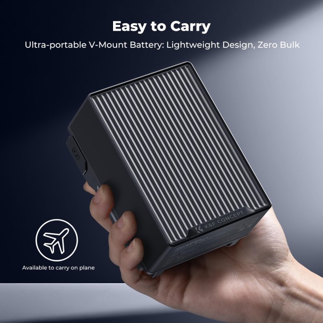 - Prenosný dizajn a vhodný pre leteckú dopravu: Batéria V-mount má rozmery 104*74*50 a váži 525 g. Pouzdro je pevné a odolné voči nárazom, vyrobené z nehorľavého PC materiálu, ktorý je odolný voči poškriabaniu a bezpečný na používanie. Vhodný pre leteckú dopravu, možno ho prenášať na palube