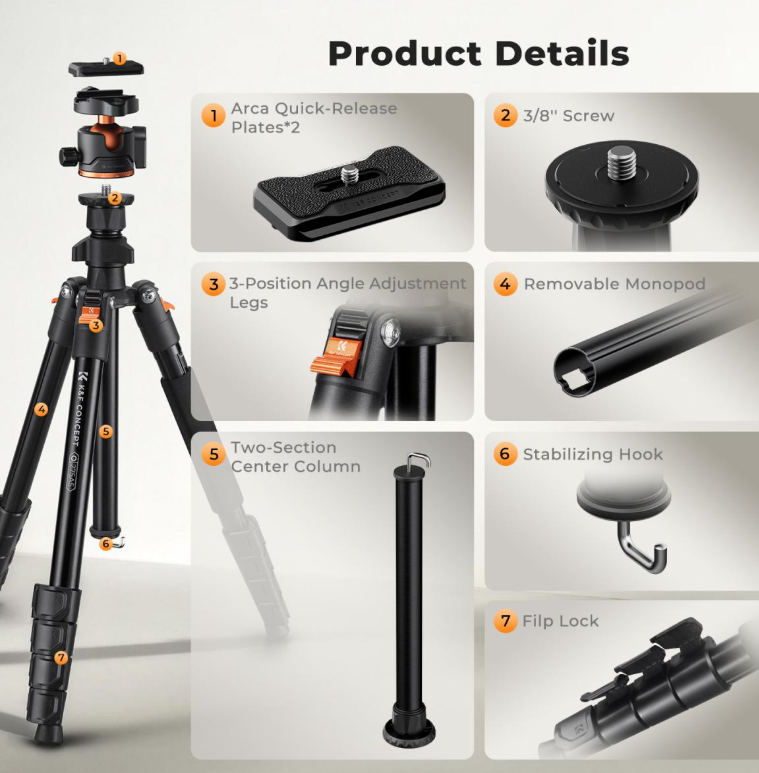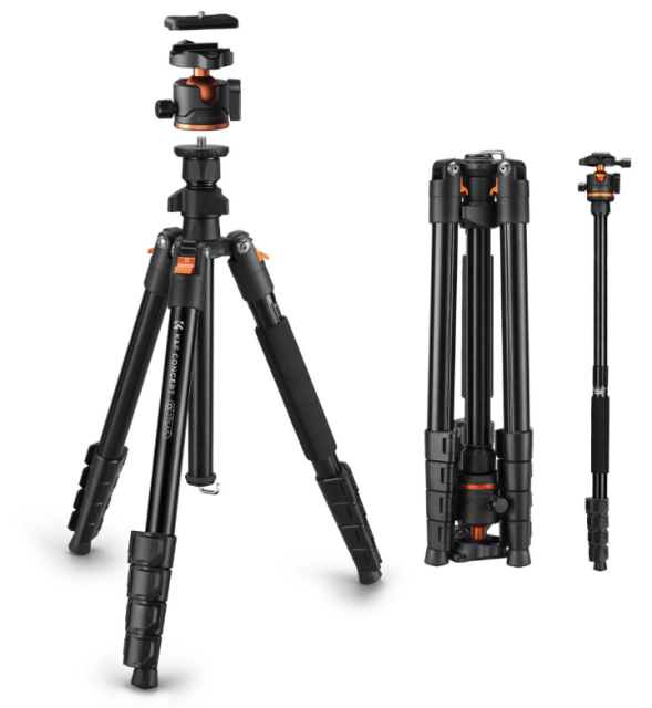 Ľahký statív K&F Concept 75" je kompaktný, univerzálny statív určený pre fotoaparáty,