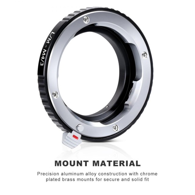 Využite plný potenciál svojho fotoaparátu Micro Four Thirds (M4/3) s adaptérom Leica M Mount na objektív MFT. Tento adaptér umožňuje bezproblémovú integráciu objektívov s bajonetom Leica M s telami fotoaparátov Micro Four Thirds, čím rozširuje kompatibilitu vašich objektívov. Tento adaptér je kompatibilný so širokou škálou fotoaparátov Micro Four Thirds vrátane fotoaparátov Panasonic Lumix a Olympus PEN a OM-D a je navrhnutý pre optimálnu stabilitu a presnosť. Odolná konštrukcia vyrobená z mosadze a hliníka zaručuje dlhodobý výkon. Manuálne ovládanie umožňuje zaostrenie na nekonečno, čím poskytuje flexibilitu pri fotografovaní. V prípade ťažších stredoformátových objektívov sa odporúča použiť teleobjektív a statív na dosiahnutie optimálnej rovnováhy. Pozdvihnite svoje fotografické zážitky s týmto všestranným adaptérom na objektívy.