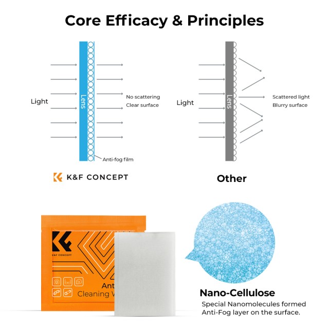 Obrúsky proti zahmlievaniu vás zbavia nepríjemného zahmlievania šošoviek a zabezpečia 6-hodinové prostredie bez zahmlievania.