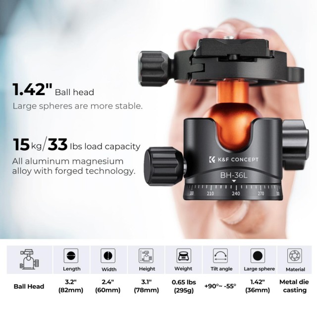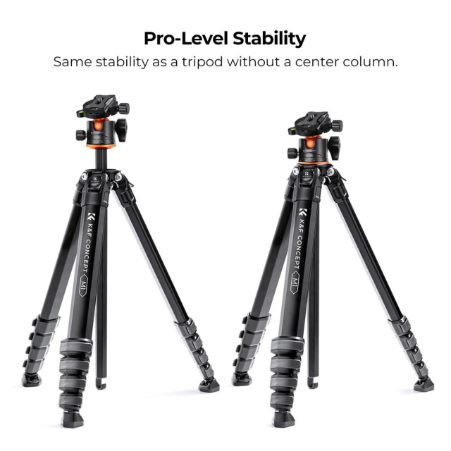 Cestovný hliníkový statív K&F Concept Mutate Series má kompaktné a prenosné telo, keďže jeho veľkosť v zloženom stave je menej ako 500 mm/20", a veľmi nízku hmotnosť 1819 g/4 kg. Priemer zloženého statívu je menší ako objem bežnej fľaše na vodu. Bez ohľadu na cestovanie a prácu sa vďaka kompaktnému dizajnu statív ľahko zmestí do akejkoľvek tašky na fotoaparát alebo batožiny. Na zabezpečenie statívu s rovnakou stabilitou ako statív bez stredového stĺpika je statív navrhnutý s vloženou uzamykacou základňou, takže nohy statívu možno pevne uzamknúť a poskytnúť úžasnú stabilitu na profesionálnej úrovni.