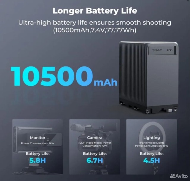 Batéria je vybavená rýchlym nabíjaním USB-C Power Delivery s výkonom až 45 W, takže ju možno rýchlo nabiť medzi natáčaním a slúži aj ako powerbanka pre smartfóny a príslušenstvo. Vstavaný dotykový OLED displej jasne zobrazuje presné percento zostávajúcej kapacity batérie stlačením tlačidla, čo umožňuje presné riadenie napájania na pľaci.