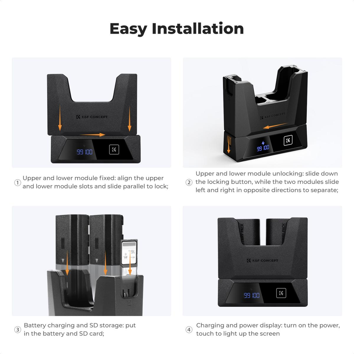 - * 【Kompaktný a prenosný modulárny dizajn】Nabíjačka batérií NPFZ100 má odnímateľnú konštrukciu, ktorá umožňuje jednoduché vybratie priestoru na batérie a použitie ako prenosného puzdra na batérie. Vďaka ľahkej konštrukcii a malým rozmerom je ideálna na cestovanie a ponúka pohodlie bez toho, aby zaberala ďalšie miesto.