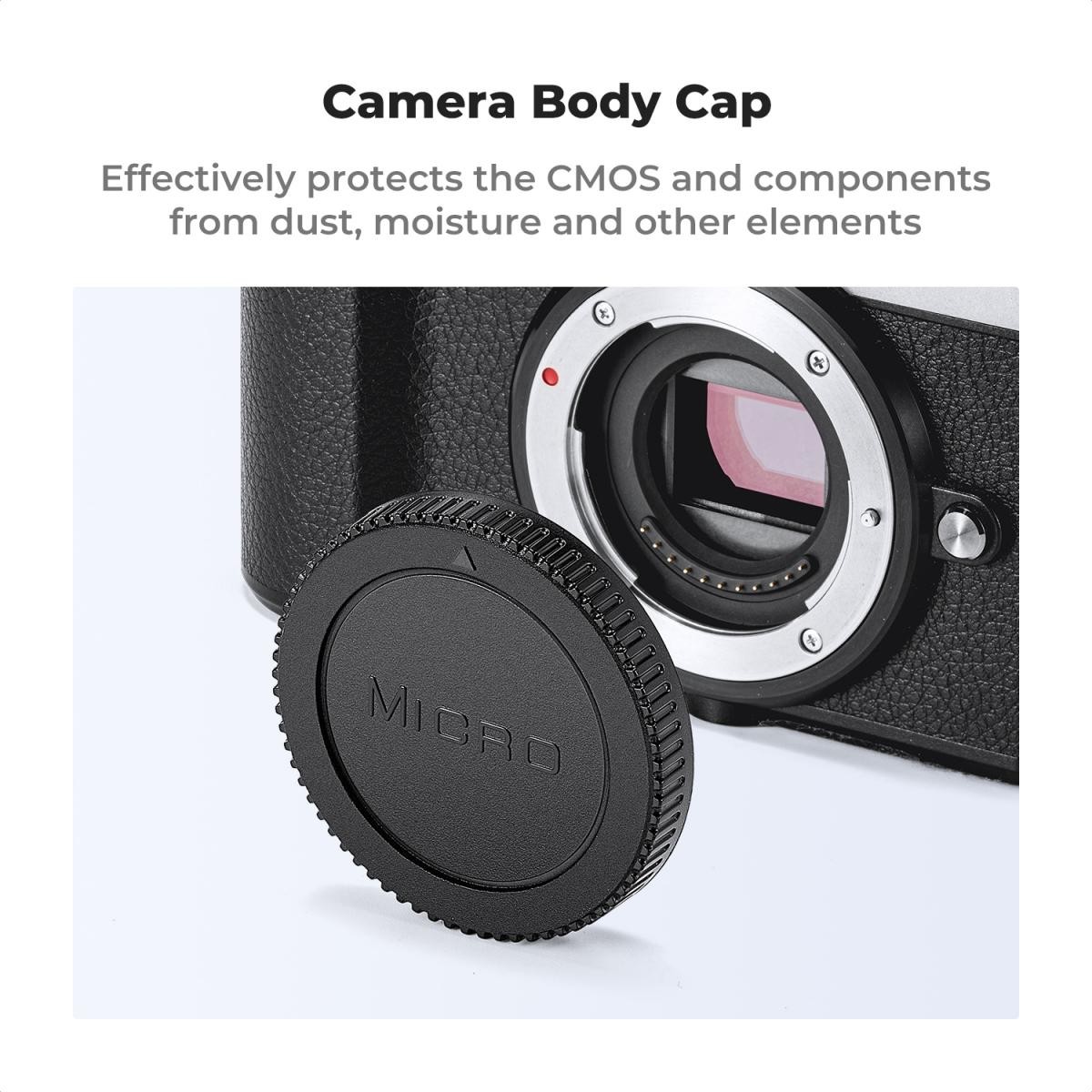 Ochranná sada K&F Concept Olympus M4/3: 2 kryty tela, 2 zadné kryty objektívu, 2 kryty hotshoe + čistiaca utierka – odolný ABS, odolný voči prachu a vode, perfektne pasuje na fotoaparáty Olympus M4/3.