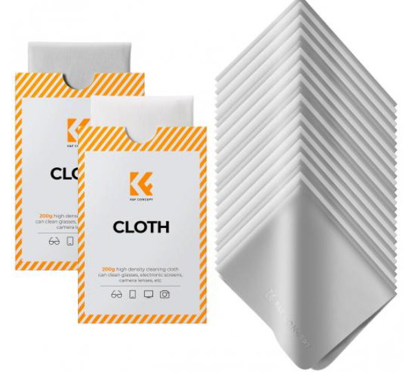 Čistiace utierky K&F Concept 30-Pack Premium Microfiber Cleaning Cloths (6 x 7" / 15 x 18 cm) sú vyrobené z vysoko hustého materiálu s hmotnosťou 200 g, ktorý nezanecháva vlákna a má rovné okraje pre čistenie celej plochy. Sú prateľné, opakovane použiteľné a ideálne na čistenie objektívov, obrazoviek, okuliarov, fotoaparátov, tabletov a optiky – poskytujú bezšmuhové a bezpečné výsledky kdekoľvek na cestách.
