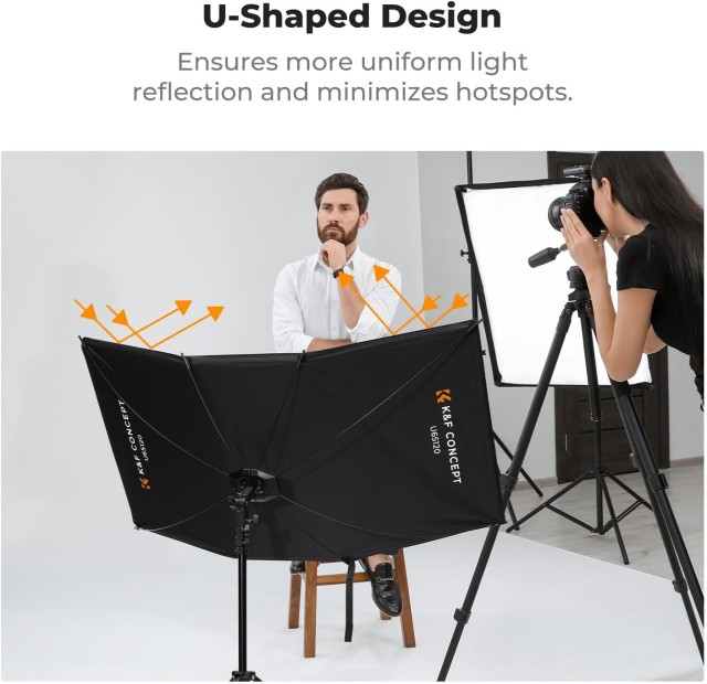 K&F CONCEPT Quick-Release Curved Reflector-Two Moves to Soft Light je profesionálne prenosné osvetľovacie riešenie pre fotografov, ktorí hľadajú rýchle, univerzálne a vysoko kvalitné ovládanie osvetlenia. Váha reflektora je len 690 g a kompletnej súpravy 1,5 kg. Súčasťou balenia je 1,5 m vysoký statív a vrecko so šnúrkou na ľahkú prepravu. Inovatívny dizajn s rýchlym uvoľnením umožňuje nastavenie v dvoch jednoduchých krokoch – odviazať popruh a stlačiť stredový čap, kým nezacvakne – čo šetrí čas v porovnaní s tradičnými reflektormi. Jeho zakrivená plocha s rozmermi 123 × 65 cm rozptyľuje svetlo jemne okolo objektu, vylepšuje tóny pleti a vytvára krásne odlesky v očiach. Nastaviteľná základňa s rozsahom 180° a dlhou rukoväťou umožňuje presné nastavenie uhla bez použitia náradia. Fotografi môžu pomocou magnetických 4-v-1 krytov okamžite prepínať medzi čiernymi, striebornými, zlatými a bielymi odrazovými povrchmi, čo ponúka maximálnu kreatívnu flexibilitu na mieste. Ideálne pre portréty v exteriéri, fotografovanie udalostí a profesionálne štúdiové nastavenia.