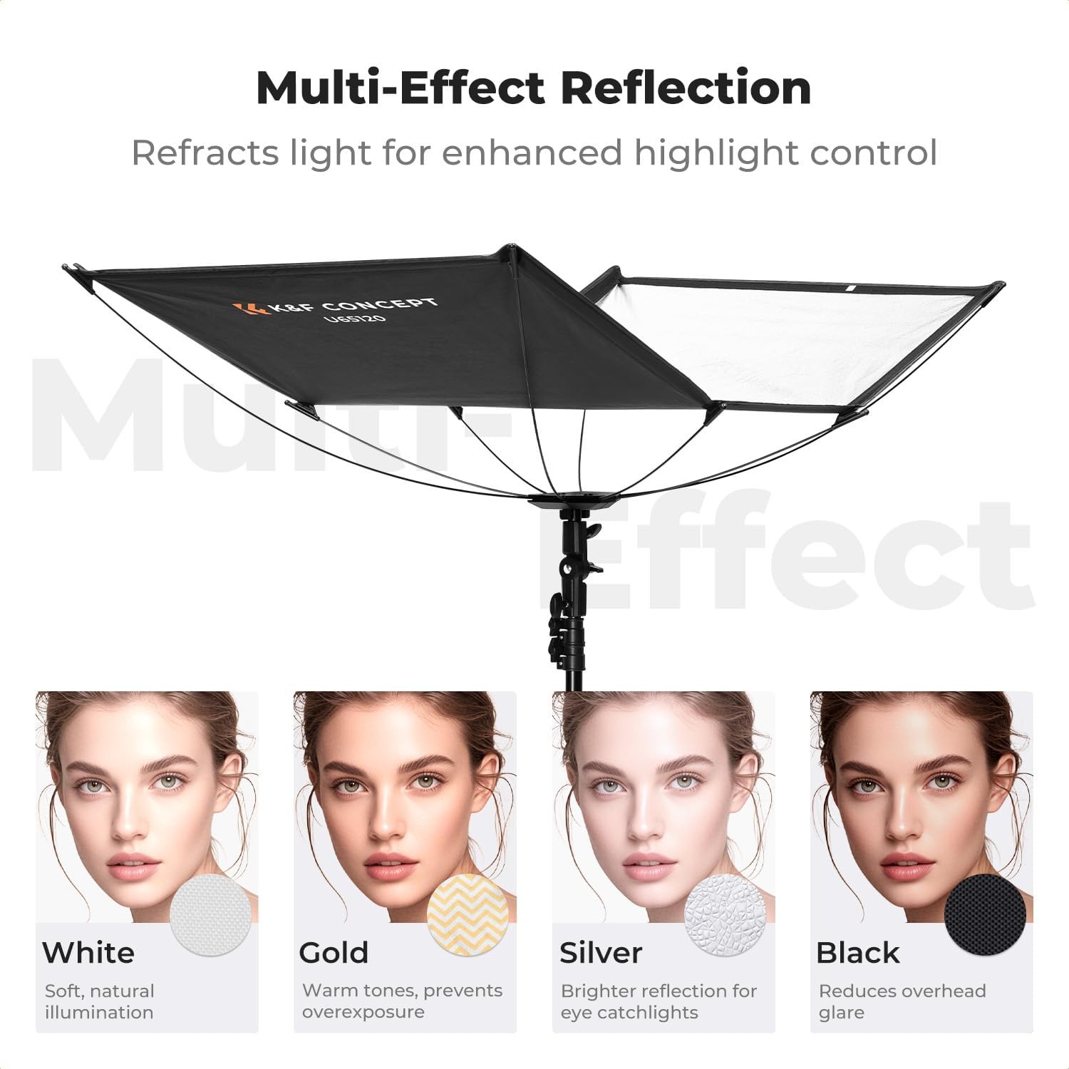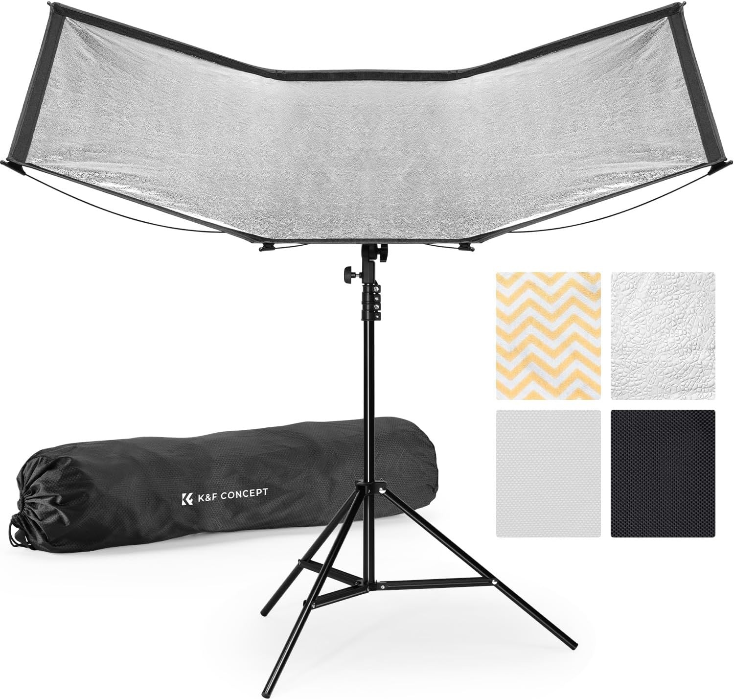 K&F CONCEPT Quick-Release Curved Reflector je ľahký, prenosný reflektor s rozmermi 123 × 65 cm, navrhnutý pre mäkké, lichotivé svetlo. Vďaka magnetickým krytom 4 v 1, otočnej základni o 180° a rýchlemu upevneniu je ideálny pre portréty v exteriéri, fotografovanie na lokáciách a profesionálne kvalitné odlesky.