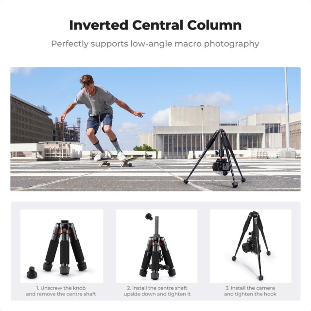 K&F Concept S225A0+BH-25L je kompaktný výkonný produkt pre fotografov a kameramanov, ktorí hľadajú stabilitu bez objemnosti. Tento mini stolný statív s hmotnosťou len 638 g a skladací do vrecka s rozmermi 23,5 cm s kardanovým závesom (len nohy 16,5 cm) je vybavený 5-dielnymi nohami z hliníkovej zliatiny s inovatívnym excentrickým dizajnom rúrok pre presné, nezávislé nastavenie výšky a rýchle upevňovacie zámky. S trojstupňovým nastavením uhla a zdvíhateľnou stredovou osou podporuje plynulé prechody medzi horizontálnym, vertikálnym, nadhlavovým, nízkym uhlom a prevráteným režimom snímania, plus plnú 360° panoramatickú rotáciu pre dynamické kompozície. Guľová hlava BH-25L bez problémov unesie až 6 kg, pričom je podporená nohami s priemerom 22 mm, ktoré sú navrhnuté pre vysokú pevnosť, odolnosť voči nízkym teplotám a odolnosť voči opotrebeniu. Kompatibilita je bezproblémová vďaka 1/4" rýchloupínacej doske, univerzálnemu držiaku na telefón a extra 1/4" rozširujúcemu otvoru – ideálnemu pre DSLR fotoaparáty, bezzrkadlové fotoaparáty, akčné kamery alebo smartfóny v stolových, cestovných alebo kreatívnych nastaveniach.