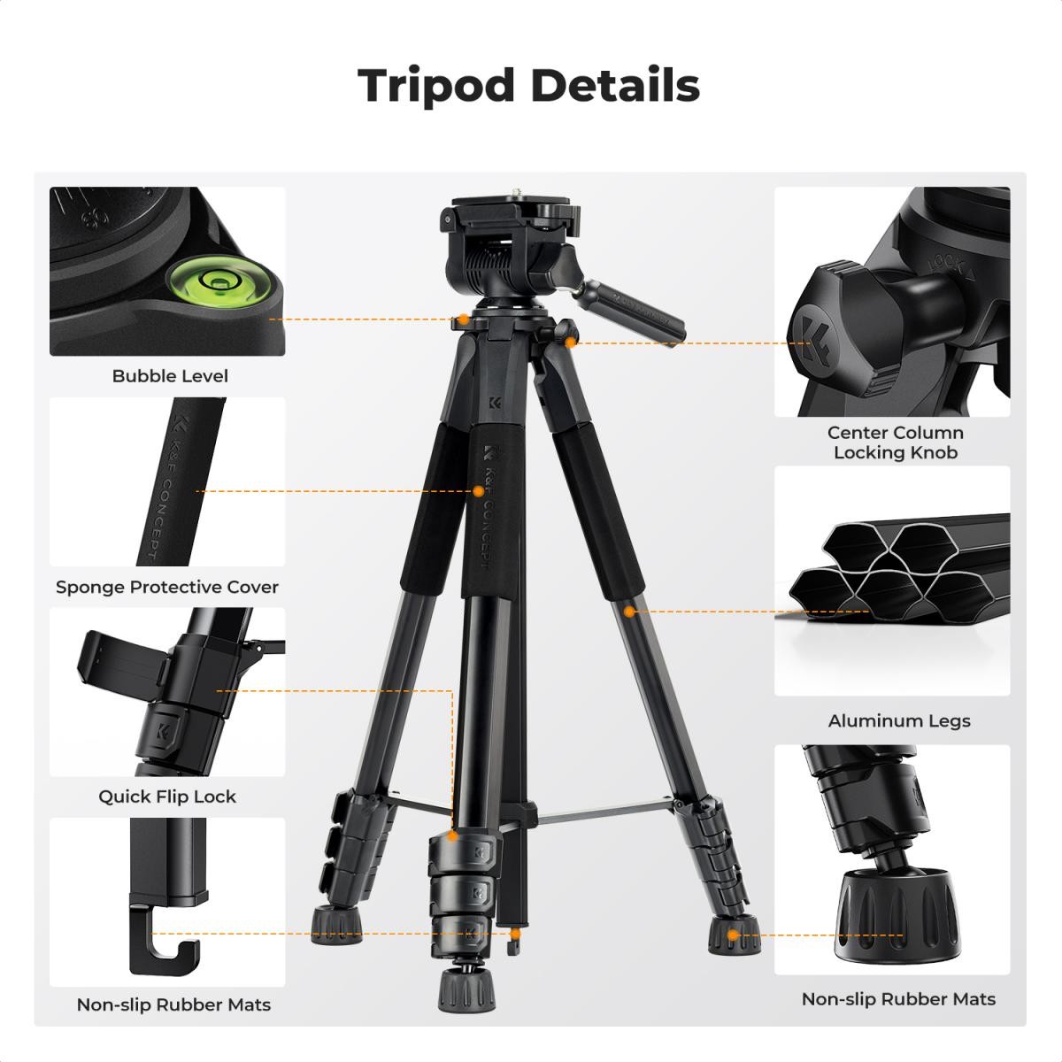 Statív K&F CONCEPT S254A3+BV0 kombinuje prenosnosť, stabilitu a univerzálnosť v jednom ľahkom dizajne. Vďaka inovatívnej päťuholníkovej konštrukcii rúrok s teleskopickou tyčou sa dá vysunúť z 19″ na 68″ a podporuje fotoaparáty, smartfóny, projektory, webové kamery a kruhové svetlá. Jeho zložená trojuholníková konštrukcia, nastaviteľná tyč a protišmykové podložky zaisťujú maximálnu stabilitu v akomkoľvek teréne, zatiaľ čo rýchloupínací tanier a 360° horizontálne otáčanie umožňujú jednoduché fotografovanie z viacerých uhlov. Tento statív je ideálny pre fotografovanie, videografiu, živé vysielanie a vlogovanie a je vhodný ako pre profesionálne, tak aj cestovné použitie.