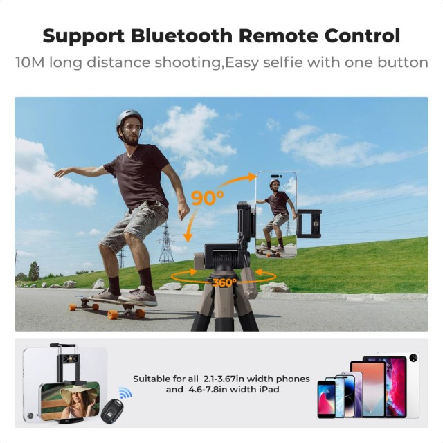 Statív fotoaparátu sa dá ľahko zložiť a prenášať, možno ho ľahko použiť pri fotografovaní v exteriéri, na cestách a pri každodennom používaní. Ľahká konštrukcia s hmotnosťou len 1,2 kg a rozmermi len 48 cm, ľahko prenosná a vhodná najmä na cestovanie. Statív pre fotoaparáty s vysokou odolnosťou sa rozširuje od 48 cm do 190 cm, robustný a stabilný, určený pre fotoaparát, mobilný telefón, projektor, webovú kameru a prstencovú lampu. Ideálny na fotografovanie, nahrávanie videa, živé vysielanie a vlogovanie.