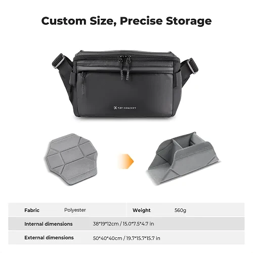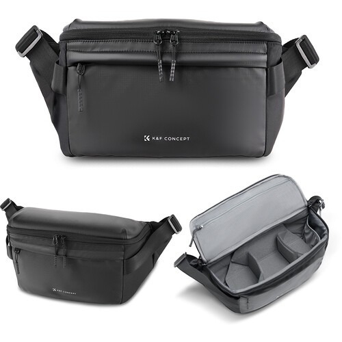 Univerzálna taška Nature Wander Sling Bag od K&F Concept je vyrobená z nepremokavého nylonu a má nastaviteľné vnútorné priehradky pre individuálne usporiadanie batožiny. Popruh je nastaviteľný pre pohodlné nosenie. Je vybavená popruhmi na upevnenie statívu a vreckom na fľašu s vodou.