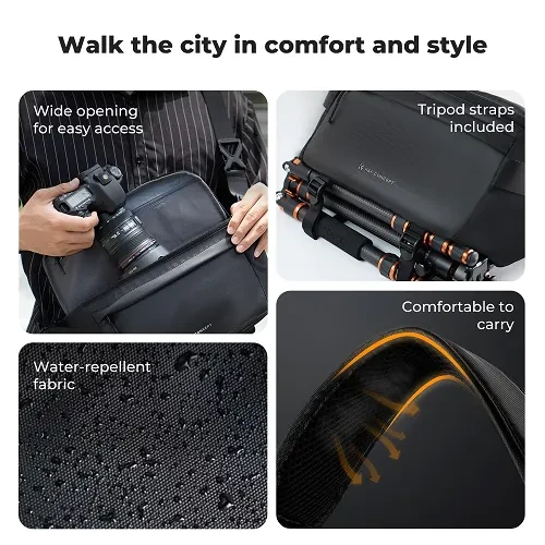 Taška na fotoaparát K&F Concept KF13.212 Urban Wander, navrhnutá pre moderných fotografov a mestských dobrodruhov, ponúka dokonalú rovnováhu medzi štýlom, ochranou a praktickosťou. S objemom 10 litrov je táto kompaktná, ale priestranná taška cez rameno ideálna na prenášanie fotoaparátu, každodenných nevyhnutností alebo dokonca malého dronu. Vodoodolný exteriér tašky a odolné nepremokavé materiály chránia vaše vybavenie pred dažďom, prachom a náhodnými škvrnami – ideálne pre fotografovanie v meste aj cestovanie v prírode. Prispôsobiteľné polstrované priehradky poskytujú flexibilné usporiadanie pre váš fotoaparát, objektívy a príslušenstvo, zatiaľ čo bočné otváranie s rýchlym prístupom zaručuje, že nikdy nezmeškáte žiadny záber.