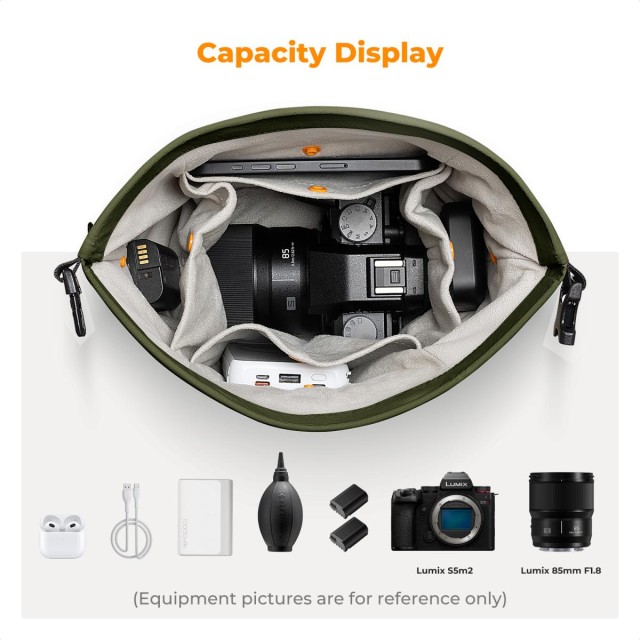 Úložný priestor pre jeden fotoaparát a jeden objektív. Slúži ako taška cez rameno, taška cez telo, kabelka alebo vnútorná vložka pre všestranné použitie. Ľahká a štýlová s rolovacím uzáverom. Kombinuje moderný dizajn s bezpečným rolovacím uzáverom pre väčšiu ochranu.