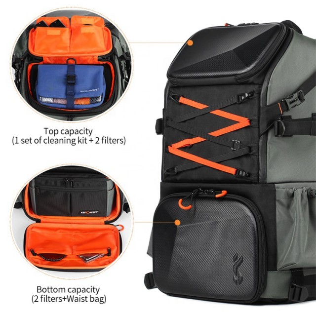 veľkosť tašky na fotoaparát s 2 vzduchovými komorami: 34*22*54cm, hmotnosť: 2900g, kapacita: 33L. Dodáva sa s taškou na fotoaparát cez rameno. Rozmery tašky na rameno na fotoaparát: 27*12,5*17cm. Vhodná na outdoorové aktivity, cestovanie, dochádzanie do práce a fotografovanie. Vnútro tašky na fotoaparát má deliacu dosku zo suchého zipsu EVA, ktorá je odnímateľná a dá sa ľubovoľne kombinovať v závislosti od veľkosti zariadenia. Na zadnej strane sa nachádza aj samostatná priehradka na notebook, do ktorej sa zmestí až 15,6-palcový notebook. Môže sa používať aj ako taška do práce alebo každodenná taška, vďaka čomu je organizácia pohodlnejšia.
