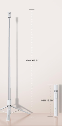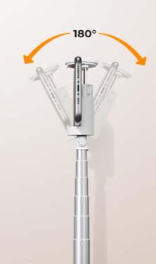 Zlepšite svoje uhly s presným nastavením dvoch osí: 360° horizontálne otáčanie pre dynamické sledovanie a 180° vertikálne nakláňanie pre univerzálne orientácie, či už fotografujete horizontálne krajiny, vertikálne TikToks alebo skupinové zábery z nadhľadu. Súčasťou balenia je nabíjateľné 9-tlačidlový Bluetooth diaľkový ovládač s praktickou šnúrkou, ktorá zabraňuje strate, umožňujúci bezdrôtové ovládanie fotografovania, priblíženia/oddialenia, prepínania medzi predným a zadným fotoaparátom, prehliadania krátkych videí a dokonca aj lajkovania – s dosahom až 10 metrov pre skupinové selfie alebo sólové vlogi. Ako multifunkčný zázrak slúži zároveň ako pozemný statív, stolný stojan alebo ručný predlžovač s univerzálnou svorkou na telefón, ktorá pojme zariadenia s uhlopriečkou od 5,5 cm do 8,5 cm v ekosystémoch iOS a Android.