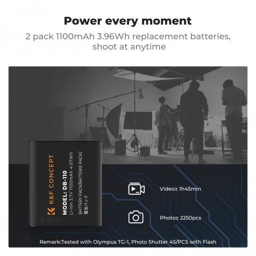 Plne dekódovacia batéria, kompatibilná s fotoaparátmi Ricoh GR III, GR III HDF, GR IIIx HDF,GR IIIX, WG-6 používajúcimi batérie modelu DB-110, kompatibilná aj s fotoaparátmi Olympus TG7/6/5/4 používajúcimi batérie Li-90B/Li-92B.
