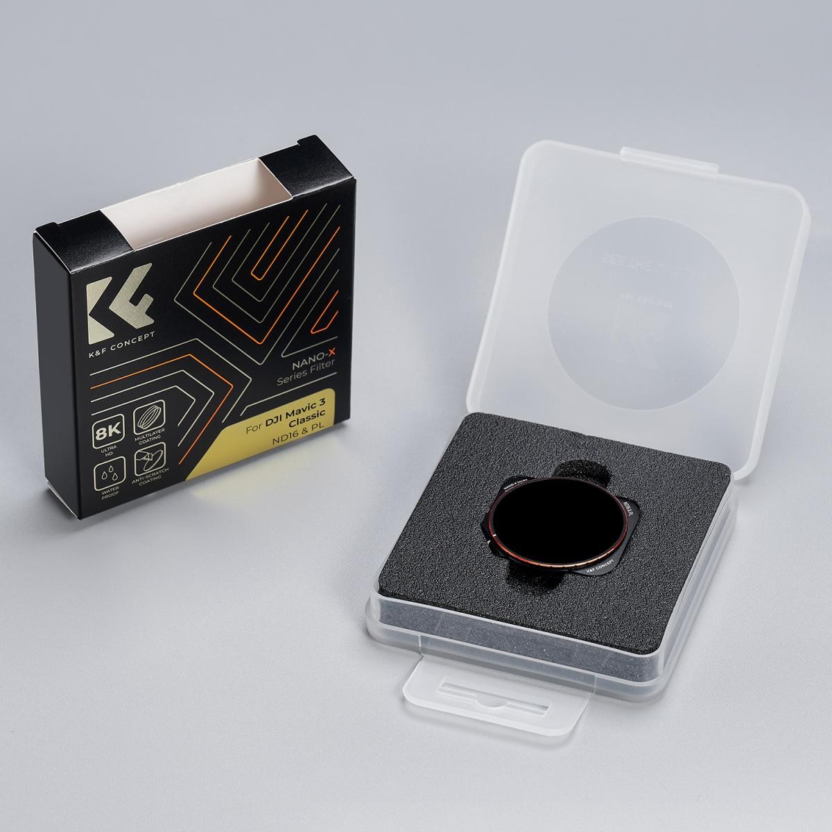Filter K&F Concept ND16 & PL pre DJI Mavic 3 Classic je vysoko výkonný filter 2 v 1, ktorý kombinuje neutrálnu hustotu a kruhovú polarizáciu na kontrolu expozície a zníženie odrazov. Je vyrobený z prémiového optického skla AGC a pokročilých nano-povlakov, poskytuje vylepšenú čistotu obrazu a zároveň je ľahký a úplne bezpečný pre gimbal.