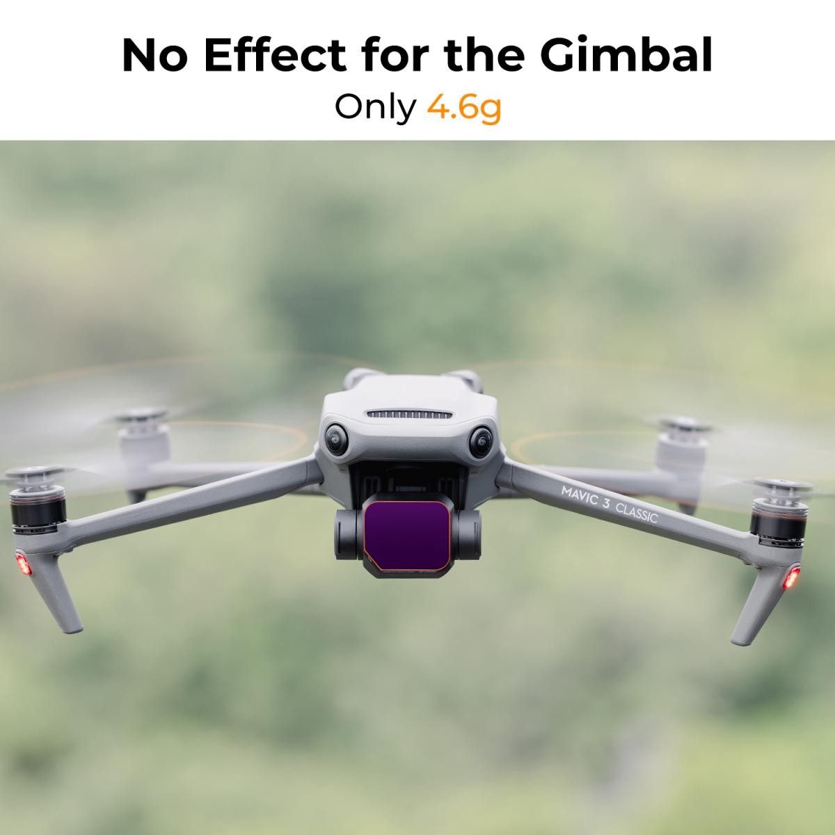Vďaka presnému bajonetovému uchyteniu sa filter bezproblémovo nasadzuje na objektív kamery Mavic 3 Classic a ľahko sa inštaluje alebo odstraňuje. S hmotnosťou iba 3,2 g nemá žiadny vplyv na vyváženie gimbalu ani stabilitu letu, čím zaisťuje spoľahlivý výkon počas každého letu.