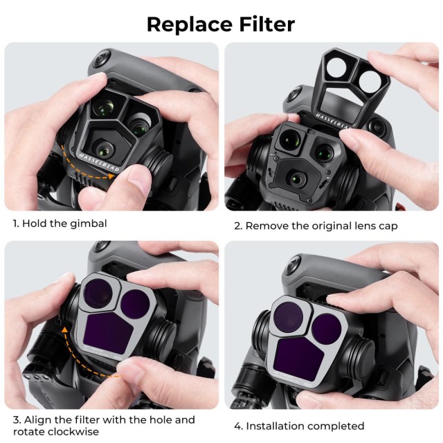 Súprava ND filtrov DJI Mavic 3 Pro】 balenie 4 filtrov ND8, ND16, ND32, ND64 špeciálne navrhnuté pre DJI Mavic 3 Pro.【HD AGC Glass】Vyrobené z dovážaného optického skla AGC s viacvrstvovou povrchovou úpravou, znižuje odlesky a reflexy v objektíve a zabezpečuje obnovenie verných farieb obrazu.