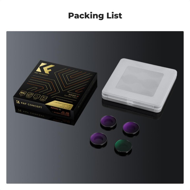 Táto najnovšia súprava filtrov ND a CPL od spoločnosti K&F Concept obsahuje filtre CPL, ND8, ND16 a ND32, ktoré majú viacvrstvovú povrchovú úpravu, skrutkujú sa, ľahko sa inštalujú a demontujú, môžu sa široko používať v každodennom živote a pri tvorbe vlogov, pomáhajú posunúť videohru o stupeň vyššie. Kompatibilný s DJI Osmo Action 5 Pro / Osmo Action 4.