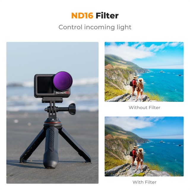 Posuňte svoju kameru DJI Osmo Action 4 alebo Osmo Action 5 na vyššiu úroveň s filtrom PRO ND16, ktorý je navrhnutý pre video a fotografovanie na profesionálnej úrovni.