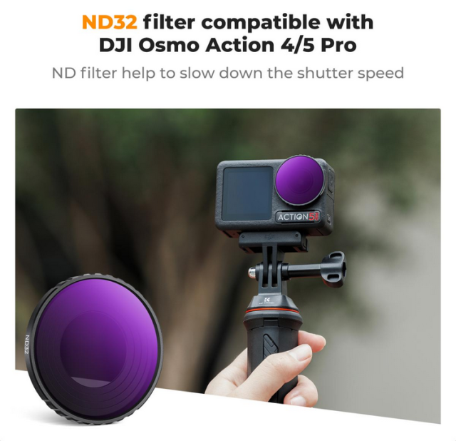 Filter K&F ND32 pre DJI Osmo Action 4/Osmo Action 5 Pro je nevyhnutným príslušenstvom pre fotografov a kameramanov, ktorí chcú mať presnú kontrolu nad expozíciou svetla. Tento profesionálny filter je navrhnutý tak, aby redukoval svetlo o 5 stupňov, vďaka čomu je ideálny na snímanie v čiastočne zamračených podmienkach a zároveň zachováva prirodzené farby bez posunov.