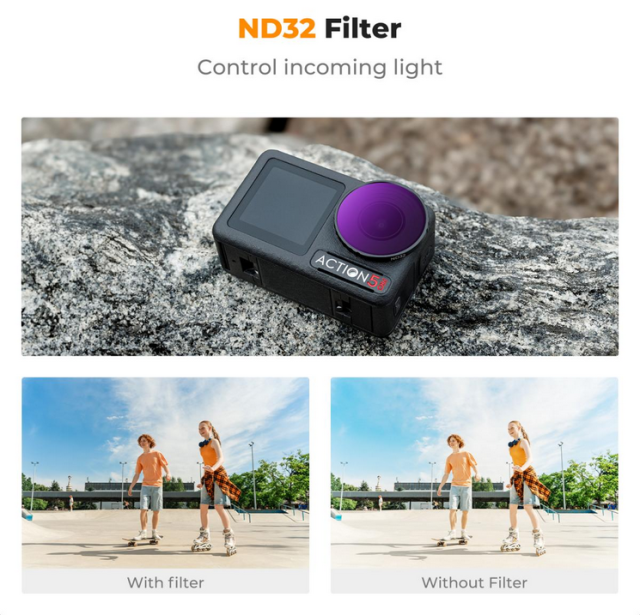 Či už zachytávate dobrodružstvá pri jasnom slnečnom svetle alebo v zamračených podmienkach, tento filter ND32 zvyšuje výkon vašej kamery DJI Osmo Action 4/5 Pro a poskytuje ostrý, živý a neskreslený obraz.