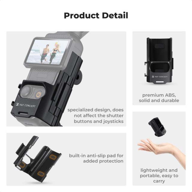 Rozširujúci adaptér Mount kompatibilný s DJI Osmo Pocket 3, rozšírený montážny rám so studenou objímkou / 1/4" otvorom pre skrutku, vhodný pre akčnú kameru Port. Rozširujúci adaptér K&F Concept je kompatibilný s DJI OSMO Pocket 3. Je ľahký, odolný a pomáha chrániť váš Pocket 3 pred poškriabaním bez toho, aby ovplyvnil nabíjanie a prevádzku.