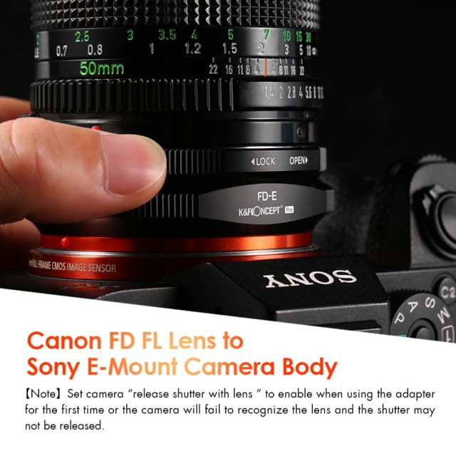 * 【 Funkcia】Objektív Canon FD alebo FL Mount môžete nasadiť na bezzrkadlovky Sony s bajonetom E-mount.
