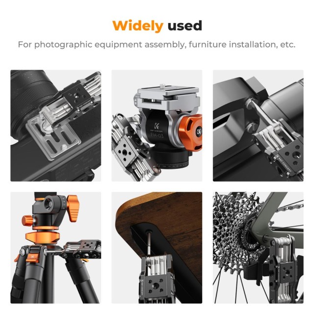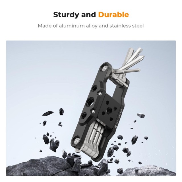 multifunkčný nástroj 10 v 1: Vreckový nástroj obsahuje 6 imbusových kľúčov (2,0, 2,5, 3, 4, 5, 3/16") a 4 skrutkovače (T25 Torx, Phillips, SL7 a plochý). Dodáva sa s dodatočnými otvormi so závitom pre náhradné skrutky (3/8" × 2, 1/4" × 5). Prenosná sada skrutkovačov vyrobená z hliníkovej zliatiny a nehrdzavejúcej ocele pre dlhú životnosť. Skrutkovače a kľúče sú vyrobené z vysoko pevnej ocele, ktorá ponúka vynikajúcu odolnosť a odolnosť proti zlomeniu.