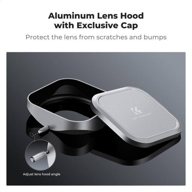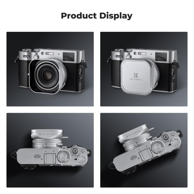 Krytka objektívu Fuji X100 + kryt objektívu Kompatibilný s fotoaparátmi Fuji X100, X100F, X100S, X100T, X100V, X100VI. Jedinečne navrhnutá clona a krytka objektívu pre filtre fotoaparátov radu Fuji X100, ktoré dokonale ladia s klasickým retro vzhľadom fotoaparátu.