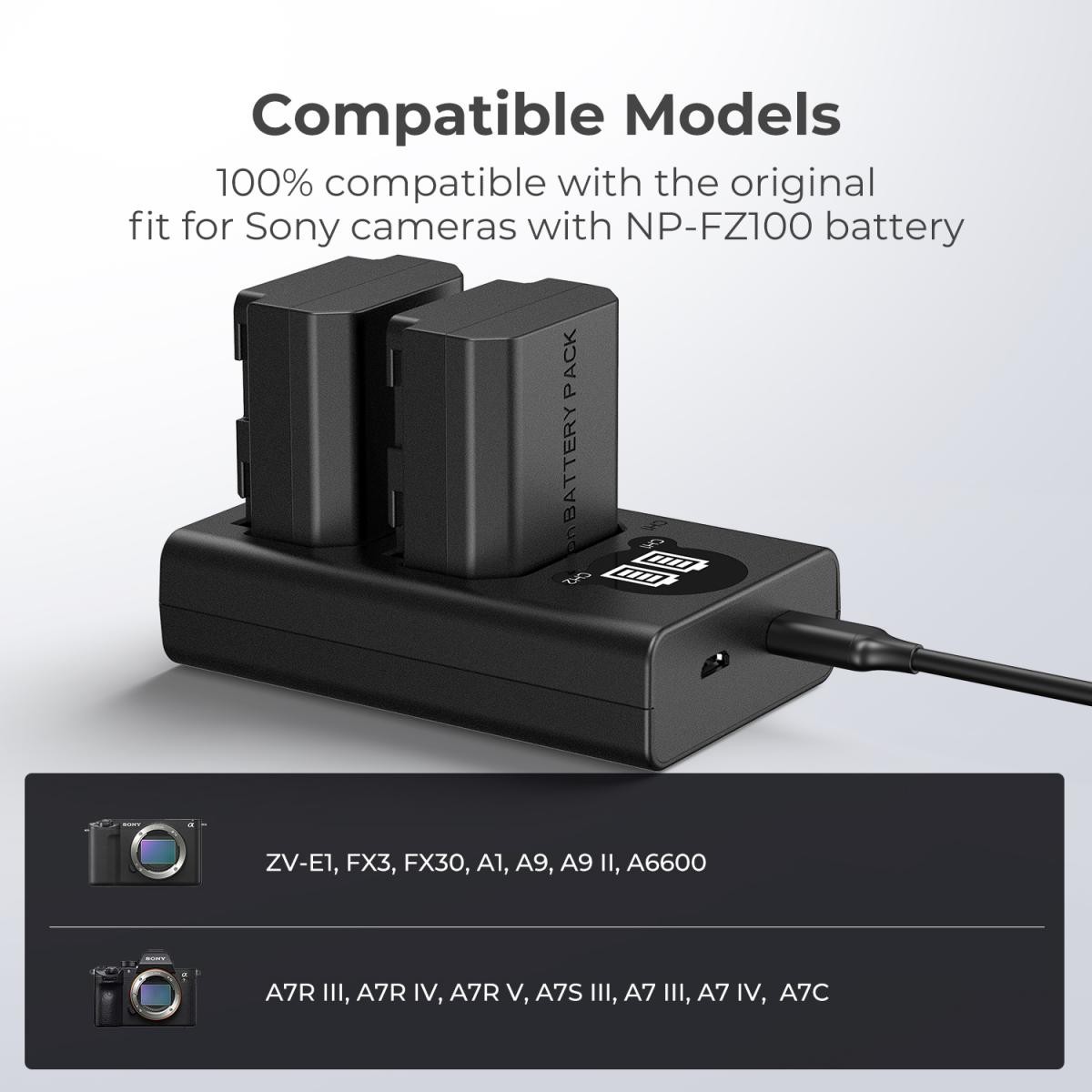 Dvojkanálová nabíjačka digitálnych fotoaparátov K&F FZ100 je určená pre fotografov, ktorí potrebujú spoľahlivé a rýchle nabíjanie batérií Sony NP-FZ100. Je vybavená dvoma nabíjacími portmi, takže môže nabíjať dve batérie naraz, pričom poskytuje 700 mA na batériu alebo 500 mA, ak sú použité oba sloty, čím šetrí cenný čas počas fotografovania. Nabíjačka podporuje vstupy typu C a Micro USB, čo umožňuje flexibilné nabíjanie zo sieťových adaptérov, notebookov, počítačov, powerbank alebo USB adaptérov do auta, pričom USB-C kábel je súčasťou balenia. Inteligentný LCD displej jasne zobrazuje stav nabíjania batérie, zatiaľ čo vstavaná inteligentná ochrana zabraňuje prebitiu, prehriatiu a nadmernému prúdu, čím zabezpečuje bezpečnú prevádzku. Nabíjačka K&F FZ100 je kompatibilná s populárnymi modelmi Sony Alpha, vrátane A7 III, A7R III, A9, A6600, A7R IV a Alpha A9 II, a je nevyhnutným príslušenstvom pre fotografov, ktorí vyžadujú efektívnosť, bezpečnosť a pohodlie. (Batérie nie sú súčasťou balenia.)