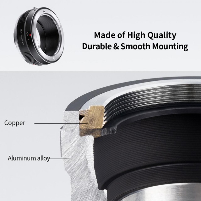Ručný adaptér zaostrovania K& amp;amp;F Concept C/Y-L je kompatibilný s objektívmiContax/Yashica (C/Y) pre fotoaparáty s bajonetom L.