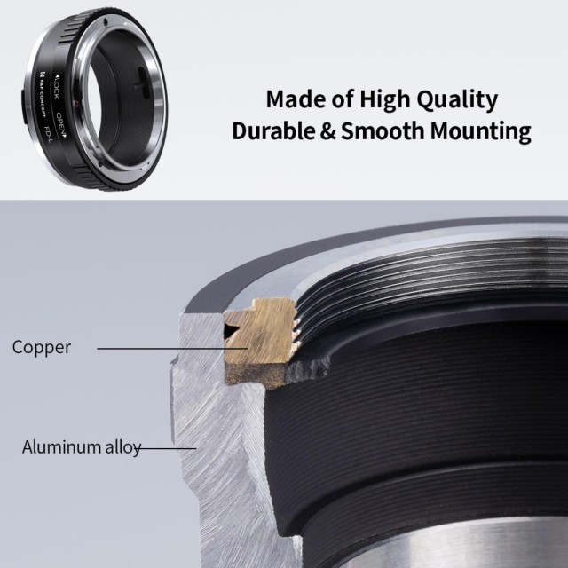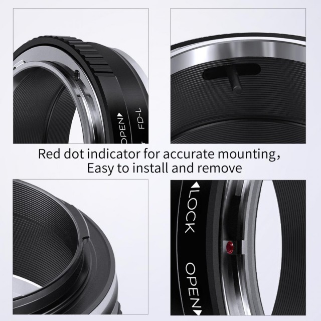 Adaptér manuálneho zaostrovania K&F Concept FD-L je kompatibilný s objektívmi Canon FD a FL pre fotoaparáty s bajonetom L.