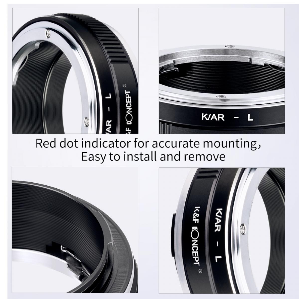 Vysoko presný adaptér objektívu K&F K/AR-L umožňuje používať objektívy Konica AR na fotoaparátoch Leica L. Je vyrobený z medi a zliatiny hliníka, ponúka hladké upevnenie, manuálne ovládanie clony prostredníctvom integrovaného clonového prstenca a podporu nekonečného zaostrenia.