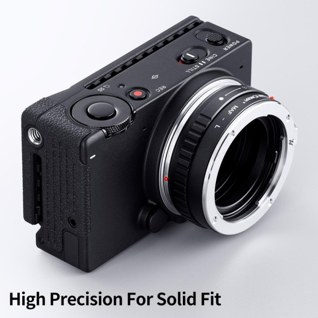 Vysoko presný adaptér objektívu K&F MAF-L je navrhnutý pre fotografov, ktorí chcú používať staršie alebo externé objektívy na bezzrkadlových fotoaparátoch s bajonetom L. Tento adaptér je vyrobený z vysoko kvalitnej medi a zliatiny hliníka a ponúka odolnú, hladkú a pohodlnú inštaláciu a demontáž. Systém vyrovnania s červenou bodkou zaisťuje vždy presné upevnenie, zatiaľ čo pevné bajonetové pripojenie eliminuje kolísanie a zaručuje stabilné fotografovanie. Plne manuálne ovládanie umožňuje kontrolu nad zaostrením a expozíciou a podporuje zaostrenie na nekonečno. Na používanie adaptéra musí byť fotoaparát nastavený do manuálneho režimu. Tento univerzálny adaptér rozširuje kreatívne možnosti tým, že spája klasickú optiku s modernými digitálnymi fotoaparátmi s bajonetom L.