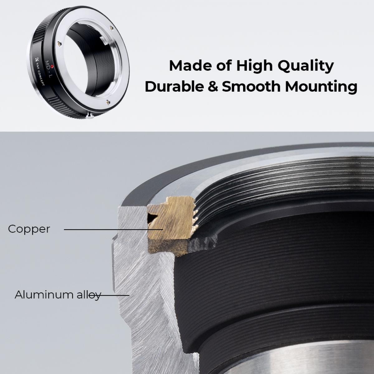 Ručný adaptér zaostrovania K& amp;amp;F Concept MD-L je kompatibilný s objektívmi Minolta Rokkor (SR/MD/MC) pre fotoaparáty s bajonetom L.