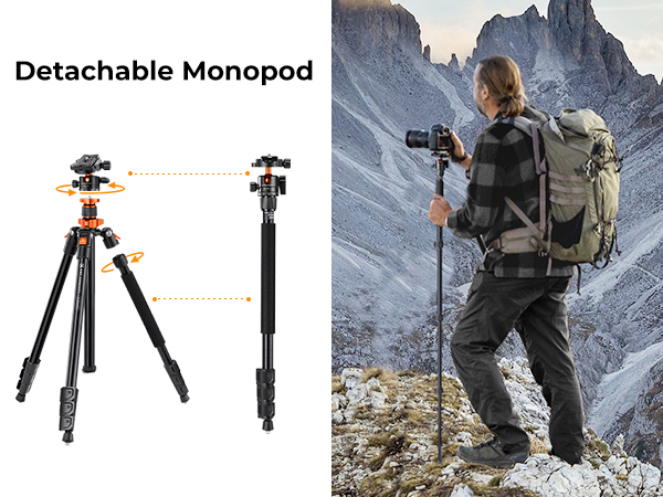 2.Odnímateľný monopod: Možno ho premeniť na ľahký monopod alebo samotnú vychádzkovú palicu, aby bolo vaše fotografovanie rozmanitejšie.