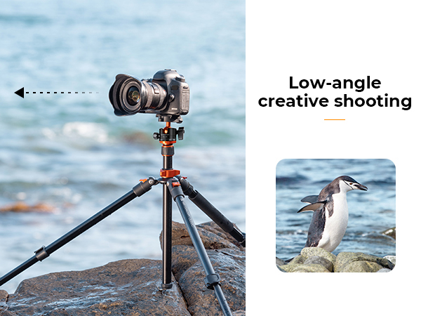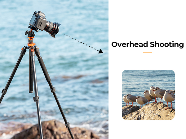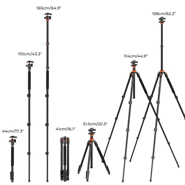 5.ĽAHKÉ NASTAVENIE 4 sekcie trubicovej nohy a maximálny priemer je 25 mm; Vďaka výkonnému a rýchlemu flipovému zámku nohy môžete nastaviť pracovnú výšku v priebehu niekoľkých sekúnd; Výška bez stĺpika dosahuje 48,8'' a výška s 2 sekciami stredového stĺpika je 62'', čo uľahčuje fotografovanie v stoji."