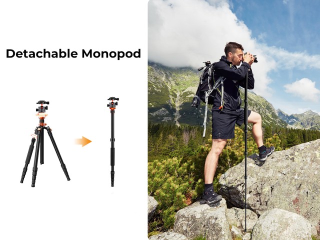 * 【Snímateľný monopod】 Možno ho premeniť na ľahký monopod alebo samotnú vychádzkovú palicu, aby bolo vaše fotografovanie rozmanitejšie.