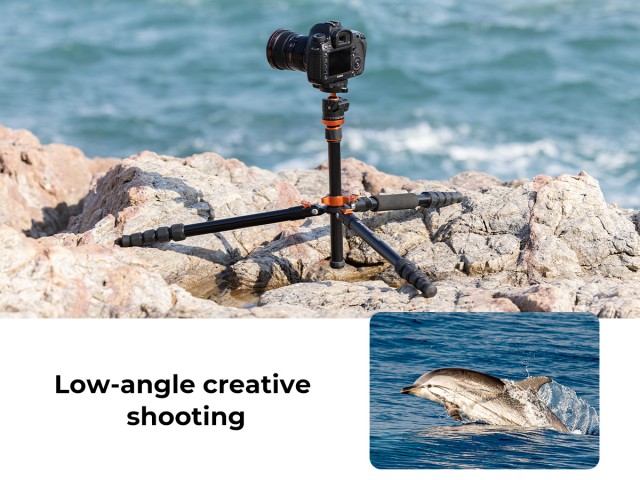 * 【Viacúhlové snímanie】Pružinové samosvorné tlačidlo nastavenia uhla nožnej trubice, stačí stlačiť a uvoľniť, aby ste rýchlo nastavili uhol otvorenia a zatvorenia troch nôh; môže vám pomôcť dosiahnuť snímanie pod najnižším uhlom, makro snímanie a iné špeciálne fotografie prostredníctvom obrátenej stredovej osi."