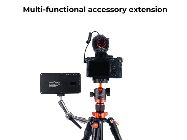 * 【360° PANORÁMA】 Hmotnosť statívu je 1,5 kg. Veľká 28 mm kovová guľová hlava poskytuje nosnosť 10 kg, možno ju otáčať o 360°, čo pomáha rozšíriť rozsah činnosti fotoaparátu DSLR pri panoramatickom snímaní.