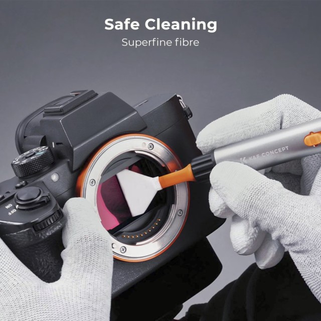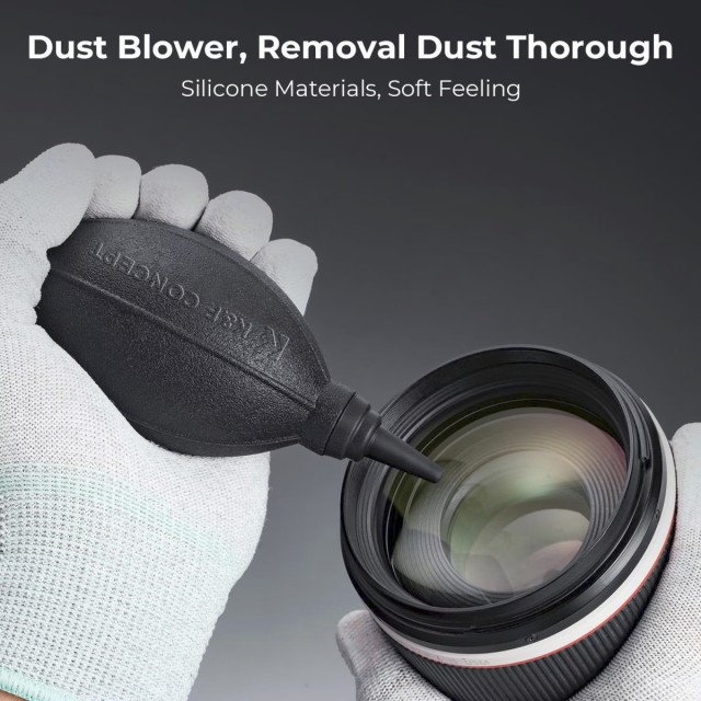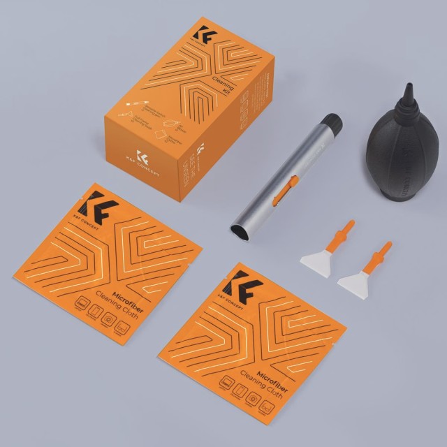 Súprava na čistenie fotoaparátov K&F Concept 6 v 1 obsahuje všetky potrebné nástroje na bezpečné čistenie fotoaparátov, objektívov a citlivých elektronických zariadení. Vďaka výkonnému fúkaču na prach, vymeniteľnému čistiacemu peru, tyčinkám na čistenie snímačov s plným formátom a dvom vákuovo uzatvoreným utierkam z mikrovlákna táto súprava zaručuje profesionálnu údržbu pre fotografov všetkých úrovní.