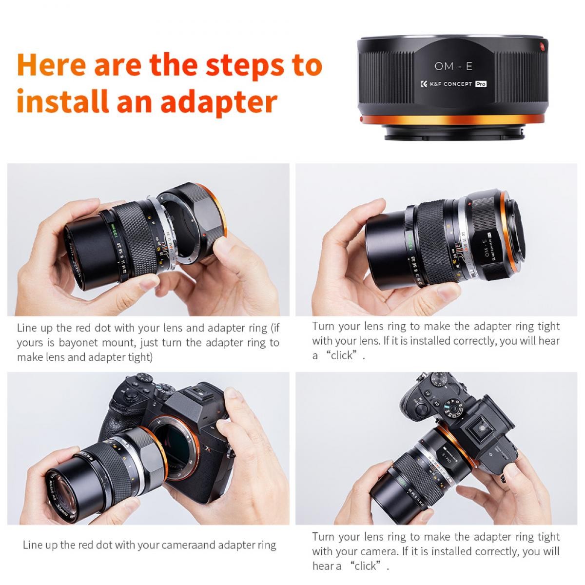 Ručný zaostrovací adaptér K&F Concept OM-NEX je kompatibilný s objektívmi Olympus OM pre fotoaparáty s bajonetom Sony E-Mount.