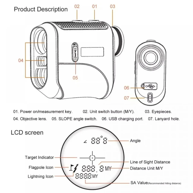 * Ľahká obsluha: podpora merania jedným tlačidlom, stlačením meracieho tlačidla môžete zmerať vzdialenosť v priamom smere, horizontálnu vzdialenosť, výšku a uhol súčasne. Podporuje aj režim korekcie vzdialenosti pri golfe, čím poskytuje golfistom presnejšie údaje.