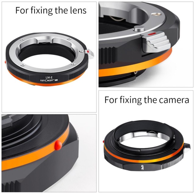 Adaptačný krúžok používaný pre objektívy s bajonetom Leica M na telo s bajonetom SONY NEX. Vysoko presný dokonalý adaptér, telo krúžku zo zliatiny hliníka a horčíka, jemné medené uchytenie neopotrebuje objektív, spracovanie je veľmi dokonalé a uchytenie je pevne a hladko spojené, zaostrenie je prijaté, možno použiť funkciu makro objektívu a zaostrenie môže byť nekonečné.