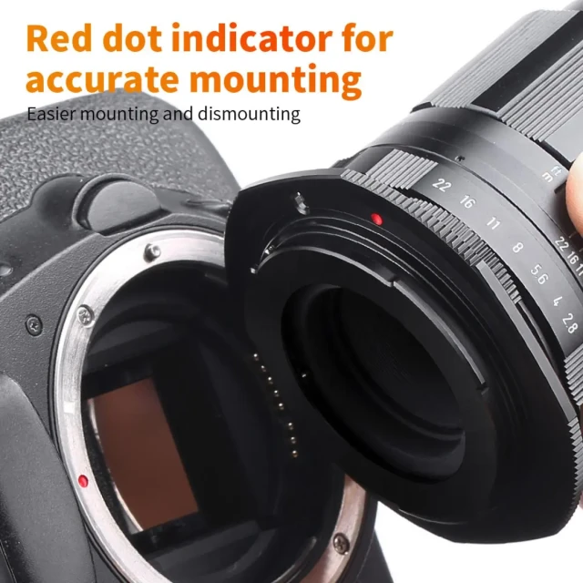 • Ak fotoaparát zobrazuje hlásenie „objektív nie je správne nainštalovaný“, upravte nastavenia fotoaparátu: „Menu“ – „Nastavenia“ – „Spúšť bez objektívu“ – „Aktivovať“ (presný názov a umiestnenie sa môže líšiť v závislosti od modelu fotoaparátu). Ak objektív nemá manuálny krúžok na ovládanie clony, clona sa automaticky nastaví na najmenšiu hodnotu f/stop.