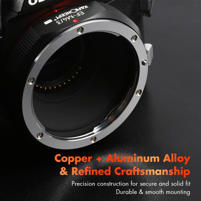 Nový dizajn vysoko presného adaptéra objektívu umožňuje používať objektív EOS EF na tele M4/3.