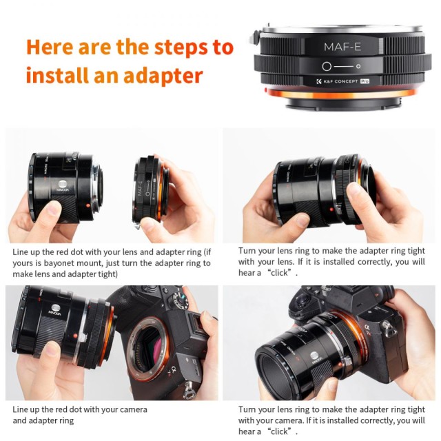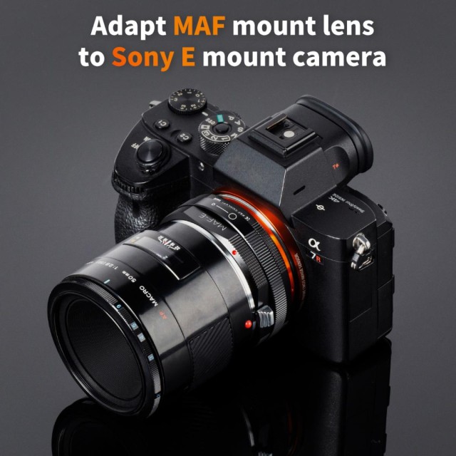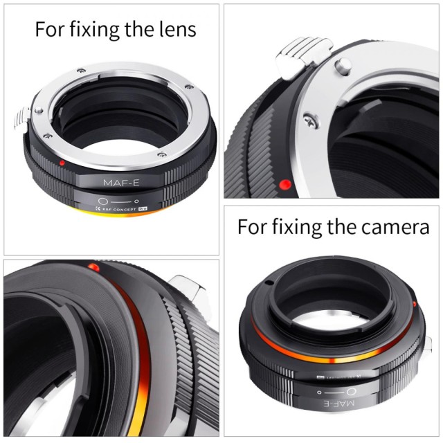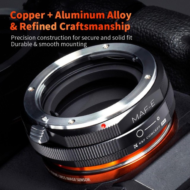 Ručný adaptér zaostrovania K&F Concept MAF-NEX je kompatibilný s objektívmi Sony Alpha Minolta AF typu A pre fotoaparáty s bajonetom NEX E-Mount.